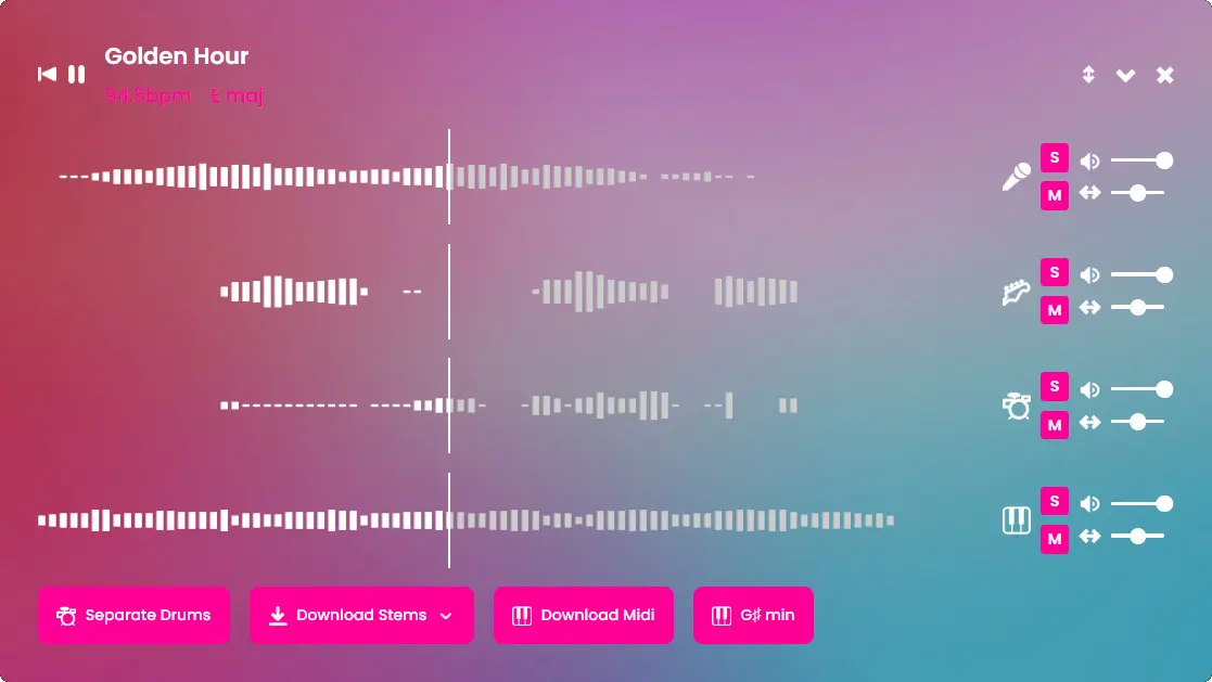 פלטפורמה אונליין ליצירת מוזיקה בעזרת בינה מלאכותית: הפרדת שירים ל־Stems, יצירת רמיקסים, כלי DJ ותוספים כמו DrumGPT ו-SynthGPT.